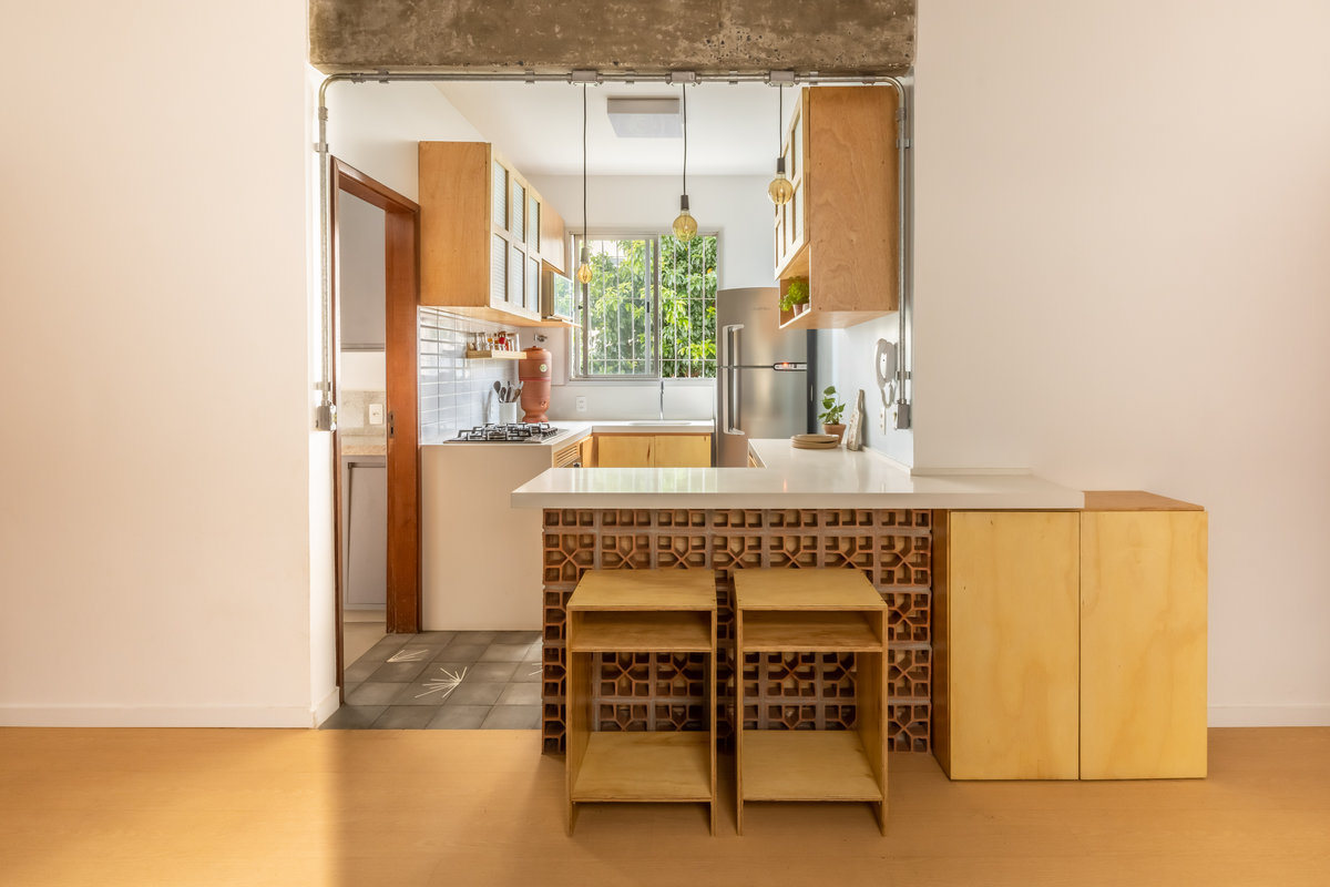 O cobogó, em sua função de divisar sem fechar, entra como escultura funcional. É um elemento arquitetônico que imprime brasilidade e leveza, sem abrir mão da sofisticação.